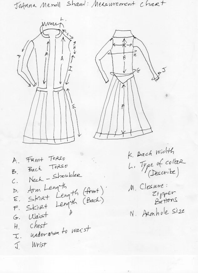 Provide me with all the measurements on this chart and I can make you a coat or dress that will fit you perfectly.